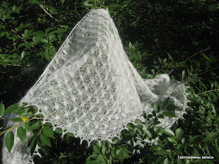 но у меня вроде как шалька белого цвета, так и получился другой сорт сирени )) Автор дизайна этой волшебной шальки - Дина, я с удовольствием тестировала этот дизайн. как увидела у неё в блоге так сразу ручки зачесались, а сами знаете, если чего-то сильно хочется, то тогда это надо исполнить ))))