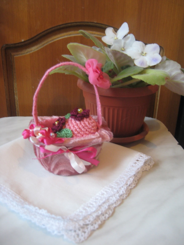 Записалась я к Юльоне на обмен "Пасхальное лукошко". Долго думала, что бы такое смастерить, решила - раз Пасха, то надо сделать яйцо, да не простое, а вязанное :-), вязала из ниточек Нарцисс в два сложения, уже позже нашла замечательное описание от Натальи Грухиной, как связать пасхальное яичко, вдруг кому пригодится. А потом подумала - надо куда-нибудь это яйцо положить, и смастерила вот такую пасхальную корзиночку, а в добавок, еще обвязала салфеточку крючком: