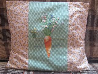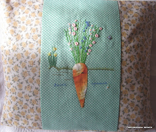 А у меня зацвела морковка! Записалась на совместный весенний отшив к Зинаиде, всегда поражаюсь какие оптимистичные и замечательные проекты она придумывает. И в этот раз вышивала с хорошим настроением. А потом решила оформить в подушку, чтоб всегда на виду была эта замечательная картинка. Правда, у меня больше лето получилось, чем весна: