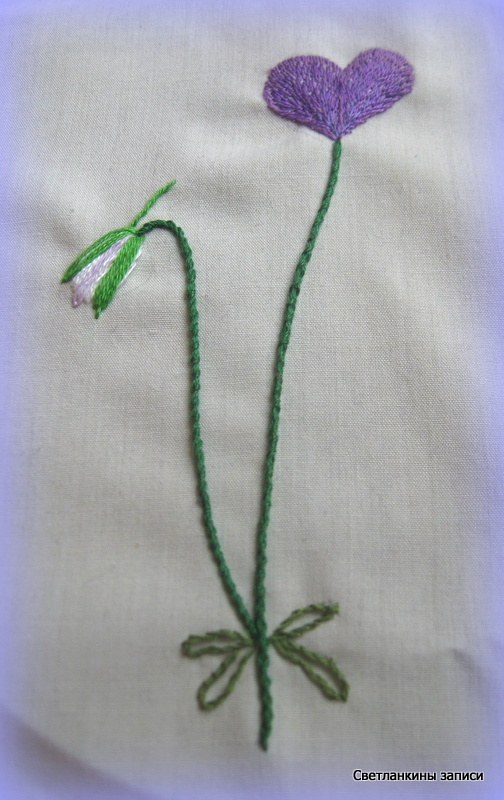 Вместе с Розой мы теперь вышиваем Анютины глазки. Вот первый этап: