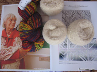 Но самое главное (а-а-а, у меня вчера даже дух захватила, когда я увидела это богатство)- это книга по вязанию эстонских шалей (она такая большая, красивая, гладенькая, и она теперь моя, я даже не мечтала просто в руках подержать :)))))), так и это еще не все, в комплект к книге Оксана приложила пряжу для вязания этих шалей, и разноцветную радугу кауни.