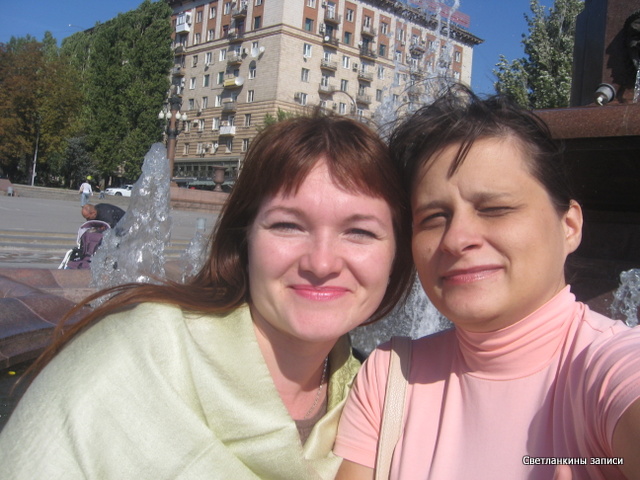 У нас почти лето, сегодня солнышко греет почти как летом - на улице 28 градусов тепла :). Прекрасное время для встреч. Такой подарок сделала нам сегодня Осень - нам, это мне и Софье из блога Домовичек. Мы с ней еще летом договорились встретиться, и вот сегодня этот день настал. Мы прекрасно провели время, прогуливаясь вдоль по Набережной, и беседуя на разные темы - о вышивке и не только. То есть совершали променад :-). Фото на память: