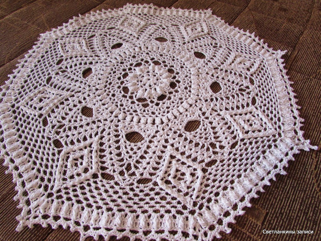 ОтветитьУдалитьСвета, салфетка очаровательная. Каждый дизайн Патрисии стоит внимания, хоть каждую вяжи и получай удовольствие))))