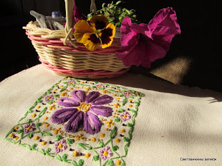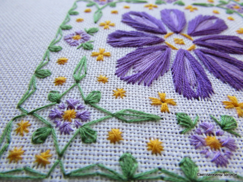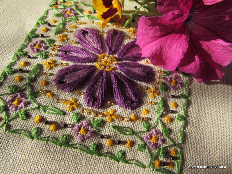 А теперь по порядку - сначала вышиваем хоровод мелких цветочков вокруг большого цветка: