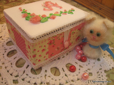 Первая шкатулка - это шкатулка для Анечки-Chivilenok из блога Рукодельные мечты. Почему-то мне захотелось для нее сделать шкатулку в розовом цвете: