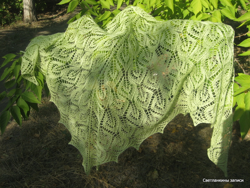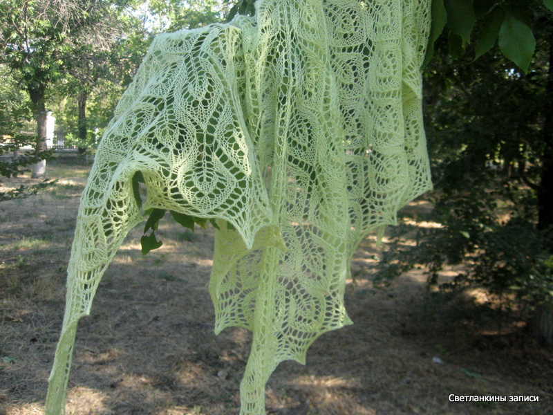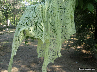 Еще я вяжу шаль (Катя, для тебя ;-)), с оригинальным названием "Омлет", но вяжу из черных ниток, поэтому омлет подгоревший :)))):