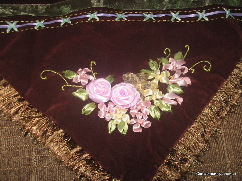 Розы в магазинчике набор по вышивке лентами наволочки для подушки.