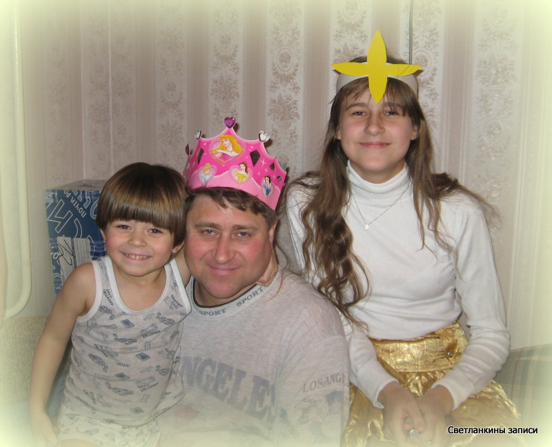 А это вся моя семья, мужчины не захотели особо наряжаться (на то они и мужчины), а Маша - звёздочка :-) ).