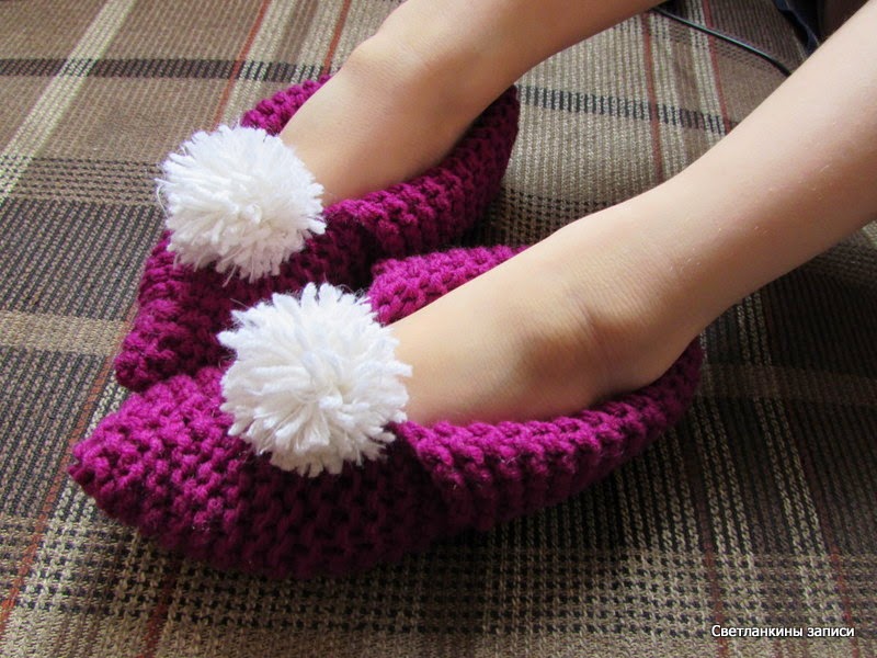 На Рождество обещают морозы и у нас тоже, значит надо утепляться. Вот такие тапочки связались в подарок для двух девочек в подарок: