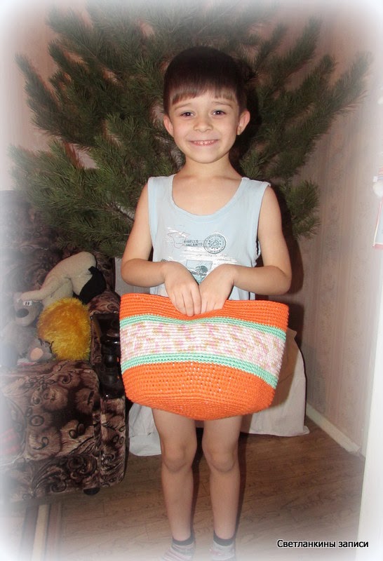Про лукошко - в принципе довольна результатом, но есть несколько моментов, которые надо будет учесть в следующий раз, например, пряжу взять потолще, или крючок потоньше. Ну и повнимательней с плотностью вязания и натяжением шнура надо быть.