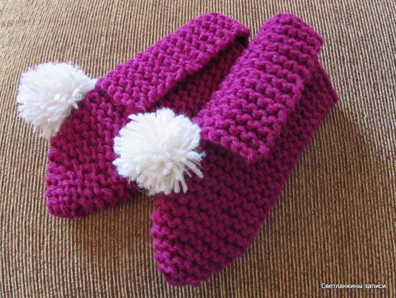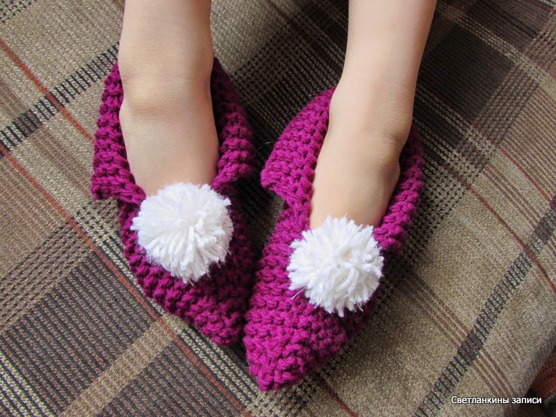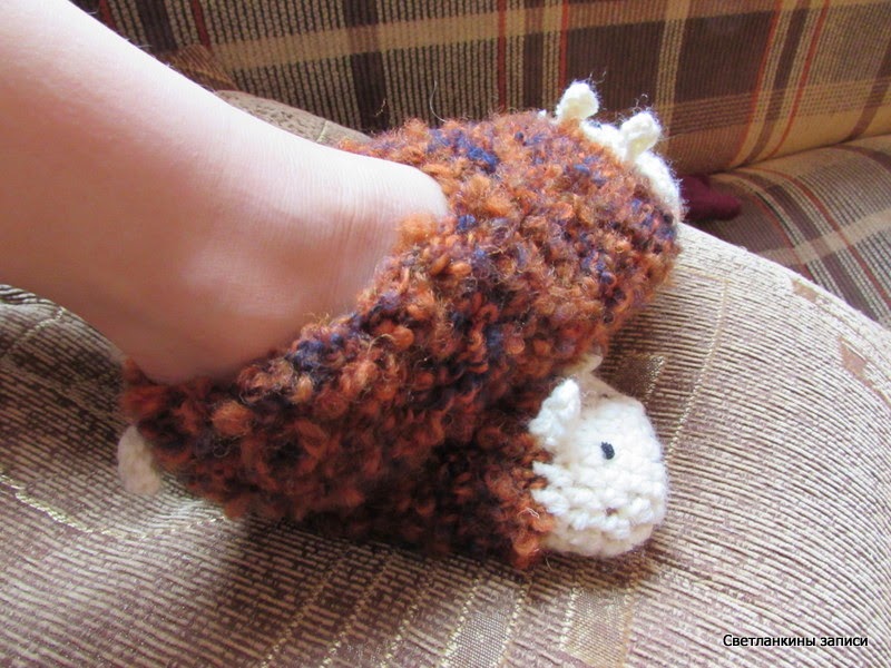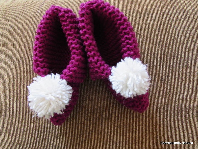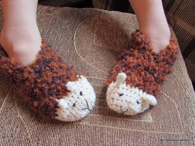 Первые были навеяны тапочками из книги Хельги Шпиц "Вязанные тапочки", но там описание на взрослый размер, у меня некая импровизация: