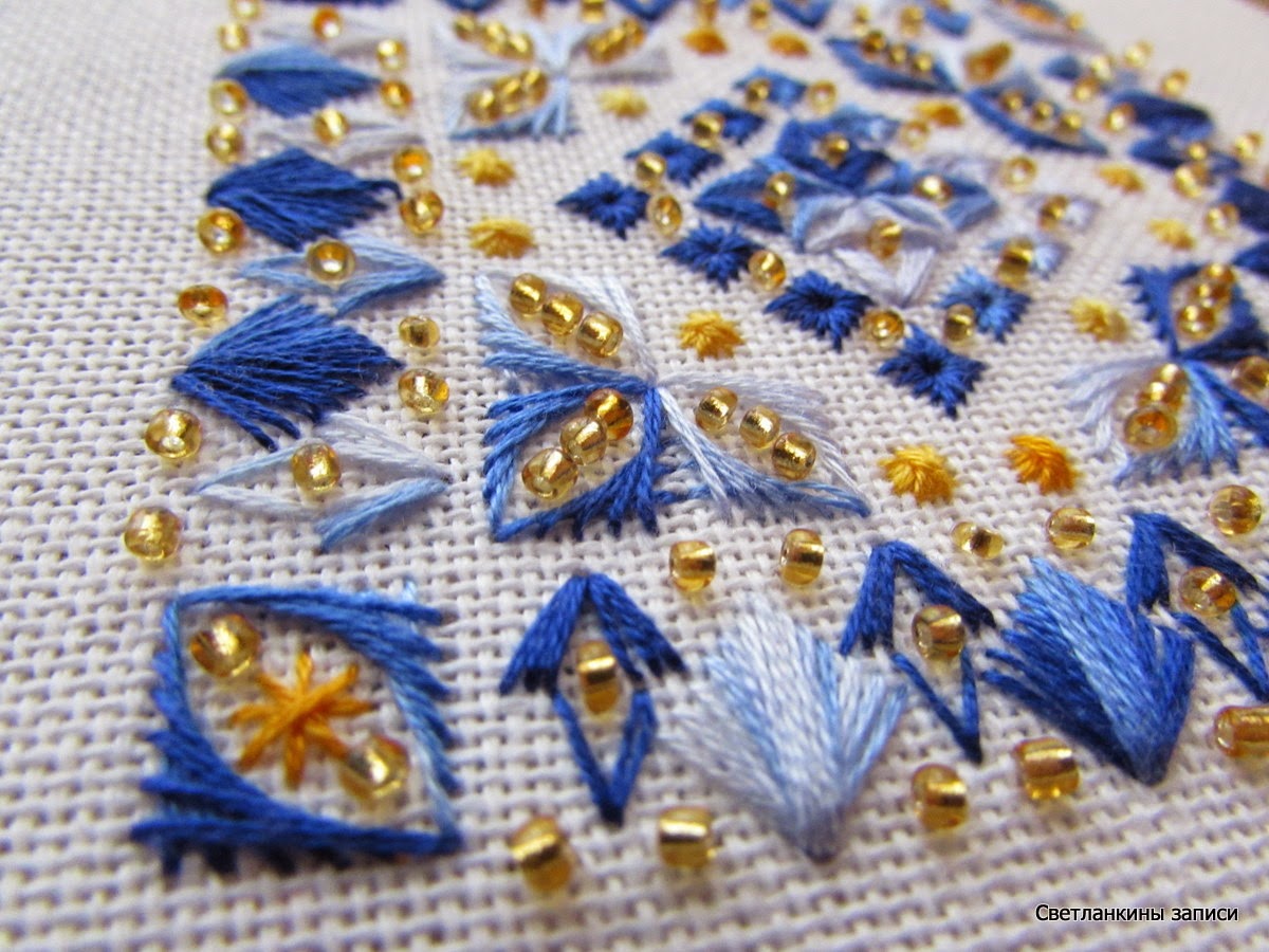 Как у вас погода? У нас опять морозно. Только я на улицу не хожу, только в окошко смотрю... А раз морозно, значит самое время вышивать третий этап. На этом этапе у нас листики в инее.