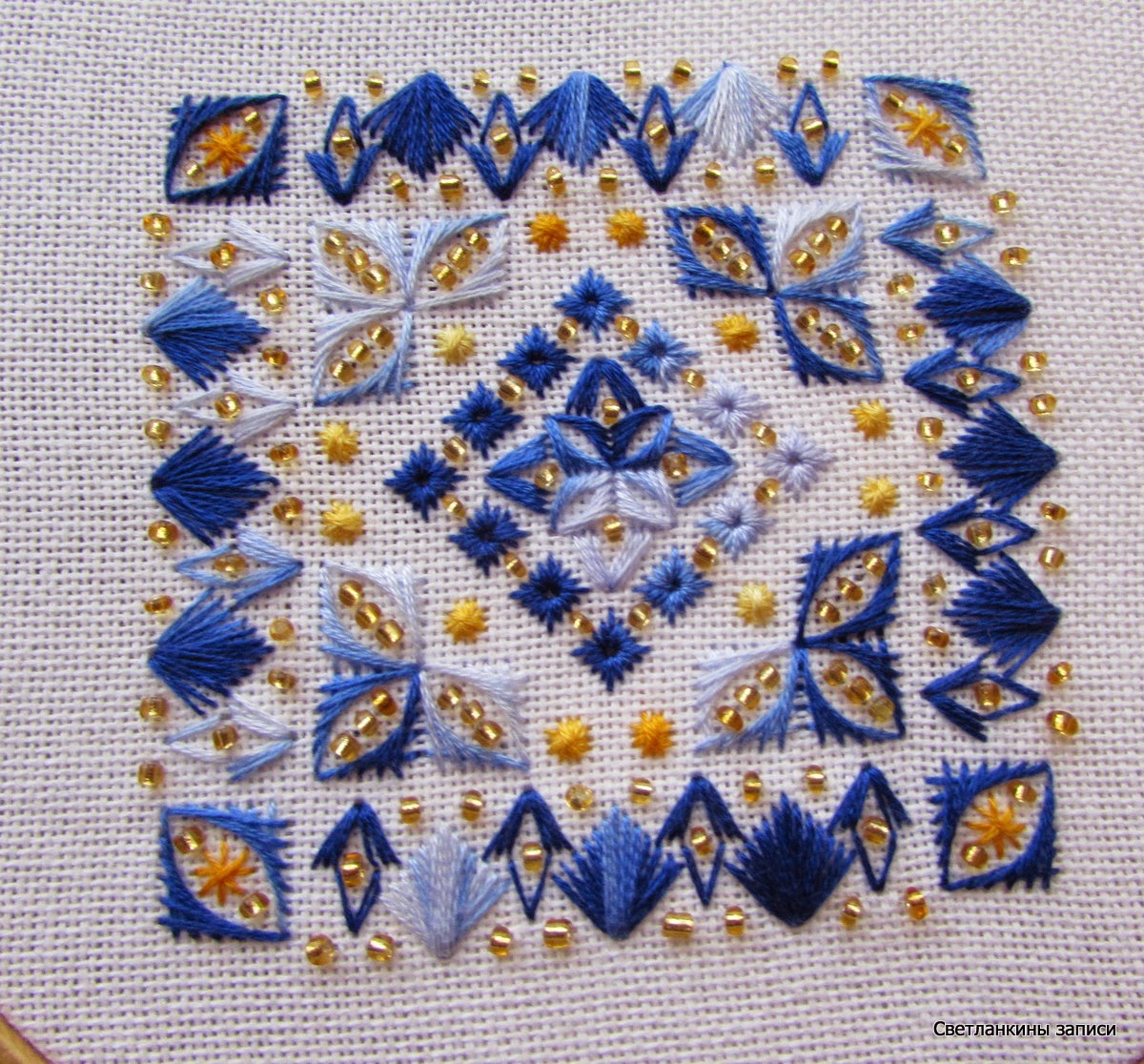 А теперь добавим солнечных лучей (а если хотите, то продолжайте вышивать одним цветом - так тоже получится очень интересно - получатся, например, снежинки и звездочки):