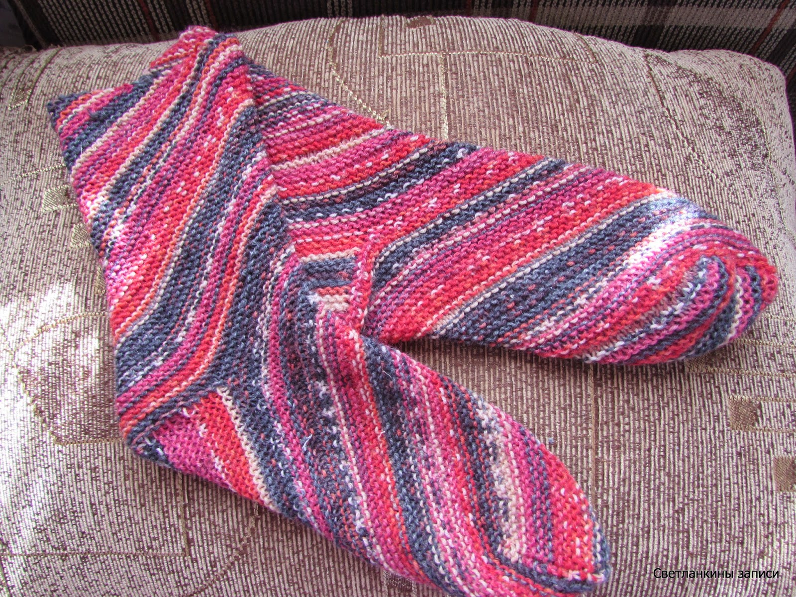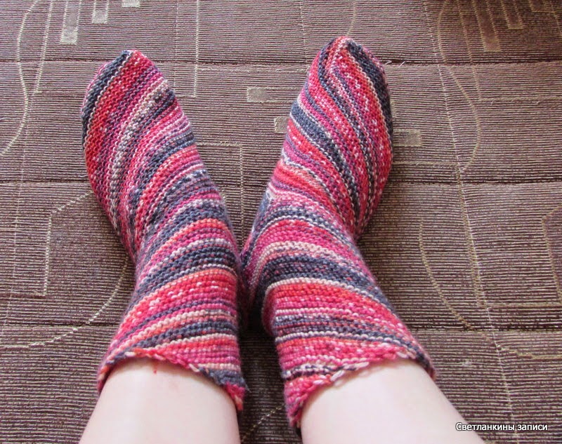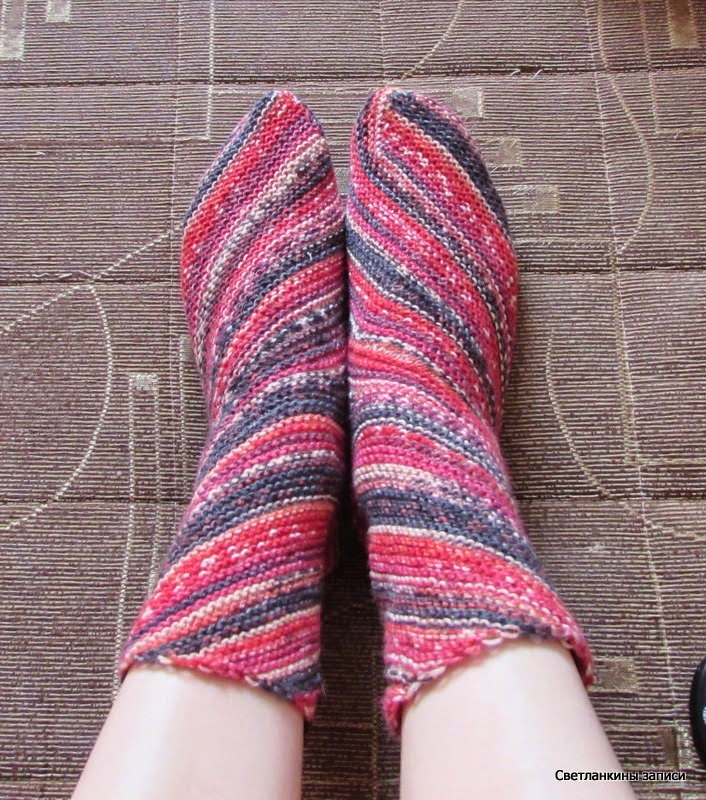 конечно, по хорошему надо было отмотать ниточку, чтобы одинаковые по расцветке носочки получились, но мне нравятся, что они немного разные